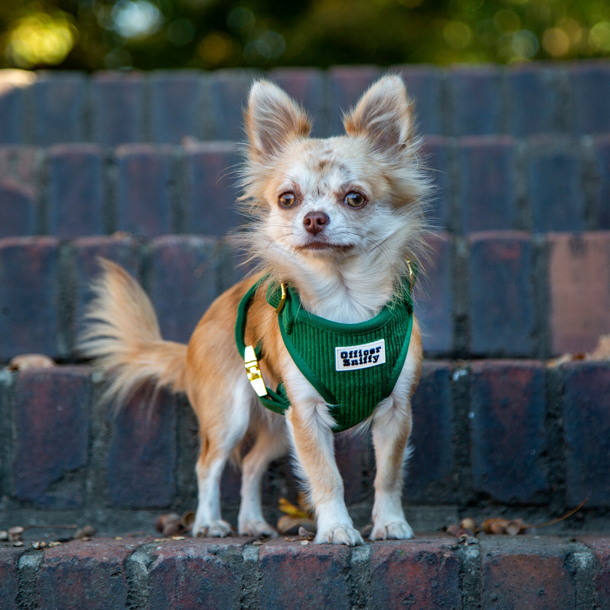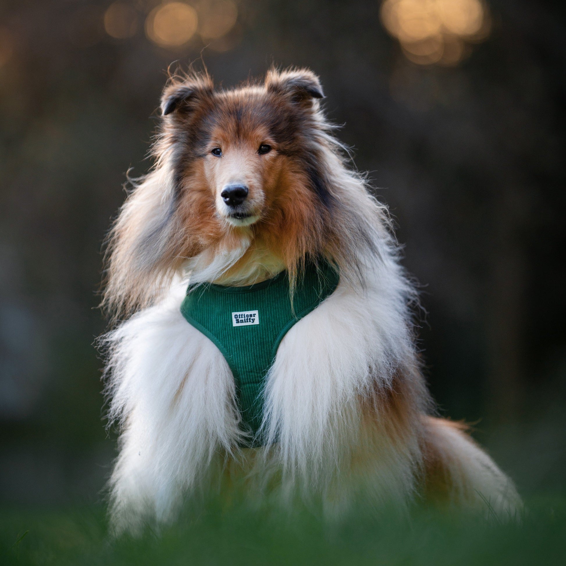 Unser grünes Cord Geschirr bringt Luxus in euren Gassi Alltag.